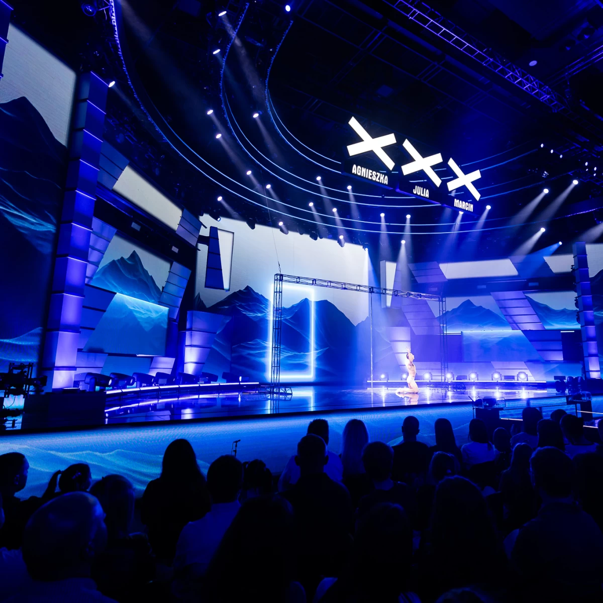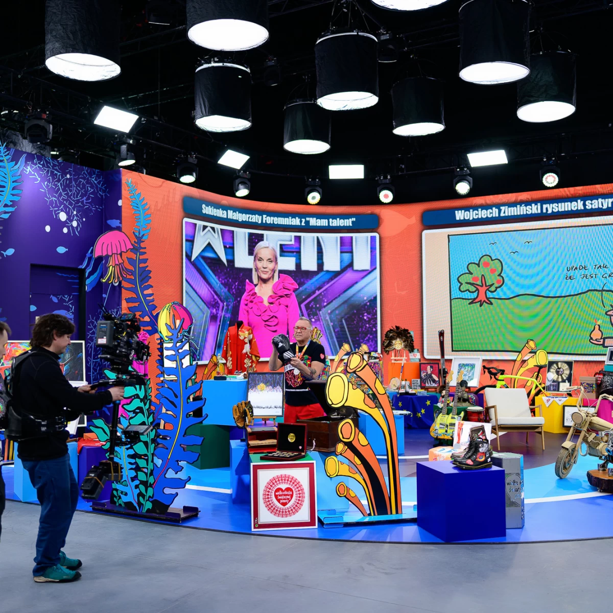 Realizacje dla licznych programów telewizyjnych, zapewniając kompleksowe oświetlenie i multimedia.